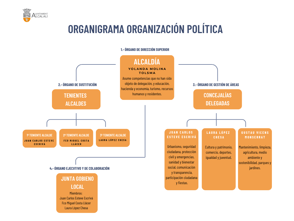 Atribuciones: Urbanismo, seguridad ciudadana, protección civil y emergencias, sanidad y bienestar social, comunicación y transparencia, participación ciudadana y fiestas.